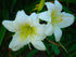 Creamy White Blooms: Large, ruffled flowers in a creamy white shade with a subtle yellow throat, blooming in mid-summer.