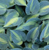 HOSTA CATHERINE / PLANTAIN LILY: Hosta 'Catherine' is a beautiful perennial known for its striking, dark green leaves with vibrant golden-yellow margins that brighten up shaded or partially shaded gardens, borders, and containers. This elegant Hosta variety creates a bold contrast with its two-tone foliage, offering year-round visual interest while thriving in low-light conditions.