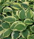 HOSTA WIDE BRIM / PLANTAIN LILY: Hosta 'Wide Brim' is a captivating perennial known for its striking, broad, heart-shaped leaves with wide, creamy white margins around a dark green center. This Hosta brings a bold, elegant contrast to shaded garden spaces, creating a well-defined and sophisticated look throughout the growing season. Its wide, variegated leaves make it a standout in mixed borders, containers, or as a ground cover.