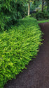 Lonicera nitida Thunderbolt™, also known as Golden Glow, is a low-growing, evergreen honeysuckle prized for its bright golden-yellow foliage and dense, mounding habit. This versatile shrub forms a lush, fine-textured hedge or ground cover, adding year-round interest to any landscape. It is highly adaptable, drought-tolerant once established, and can be shaped into topiary or used as an alternative to boxwood.