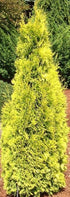 Comparison: Unlike other green Thuja varieties, Amber Gold Cedar offers a unique golden color, making it an eye-catching addition to any landscape. The bright yellow to golden hue contrasts beautifully with darker green evergreens, while the compact, pyramidal form ensures it remains manageable in smaller spaces.
